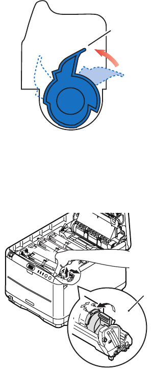 colored toner release lever on the cartridge to be replaced